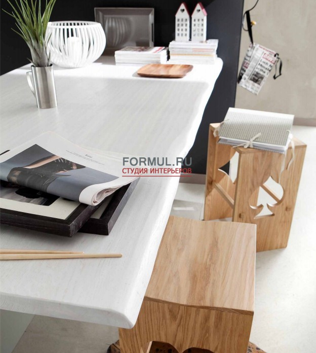 Фабрика AltaCorte обратилась к так называемому экодизайну, результатом которого стали коллекции ECO natural living и ECOLAB – это оригинальные столы, кровати, шкафы и комоды из тяжелого массива дерева. Стиль такой мебели можно охарактеризовать как скандинавский. А искусственная состаренная древесина и грубые и в то же время оригинальные способы крепления древесины на стыках, защелки, петли дверей и иные декоративные детали – все это добавляет оригинальности и немного романтики в интерьер. Дерево на ощупь очень гладкое, хотя поверхность совершенно неровная. Искусно дополнят такие массивные предметы мебели мягкие подушки и чехлы на стульях из льна. Такая мебель может стать удачным решением для оформления