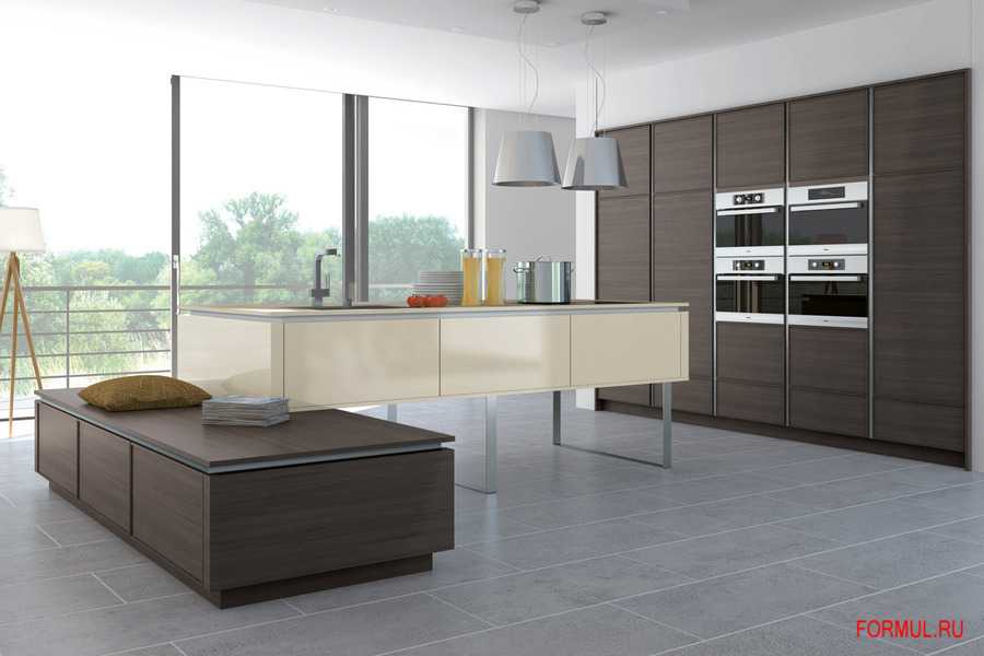 Массивная мебель, лаконичные формы и строгость — вот что отличает эти кухни от других моделей. Открытая планировка помещения удобна и практична. Можно легко готовить любимые блюда и тут же общаться с гостями или накрывать стол. На такой кухне вы не почувствуете дискомфорт из-за нехватки пространства. Благодаря такому дизайну, визуально ваше помещение покажется большим и просторным.