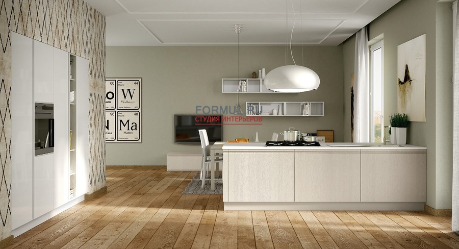 Кухня Berloni Canova Rovere Sahara - второй элемент коллекции мебели для кухни из скального дуба в двойной отделке от итальянской фабрики Берлони, который имеет интегрированные единицы мебели.
