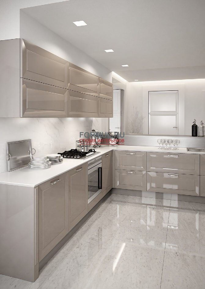 Кухня Berloni Olympia Biscotto Bianco Calce станет элегантным украшением Вашей квартиры благодаря комбинации меламина и текстурированного стекла в отделке ремесленным лаком во множестве оттенков.