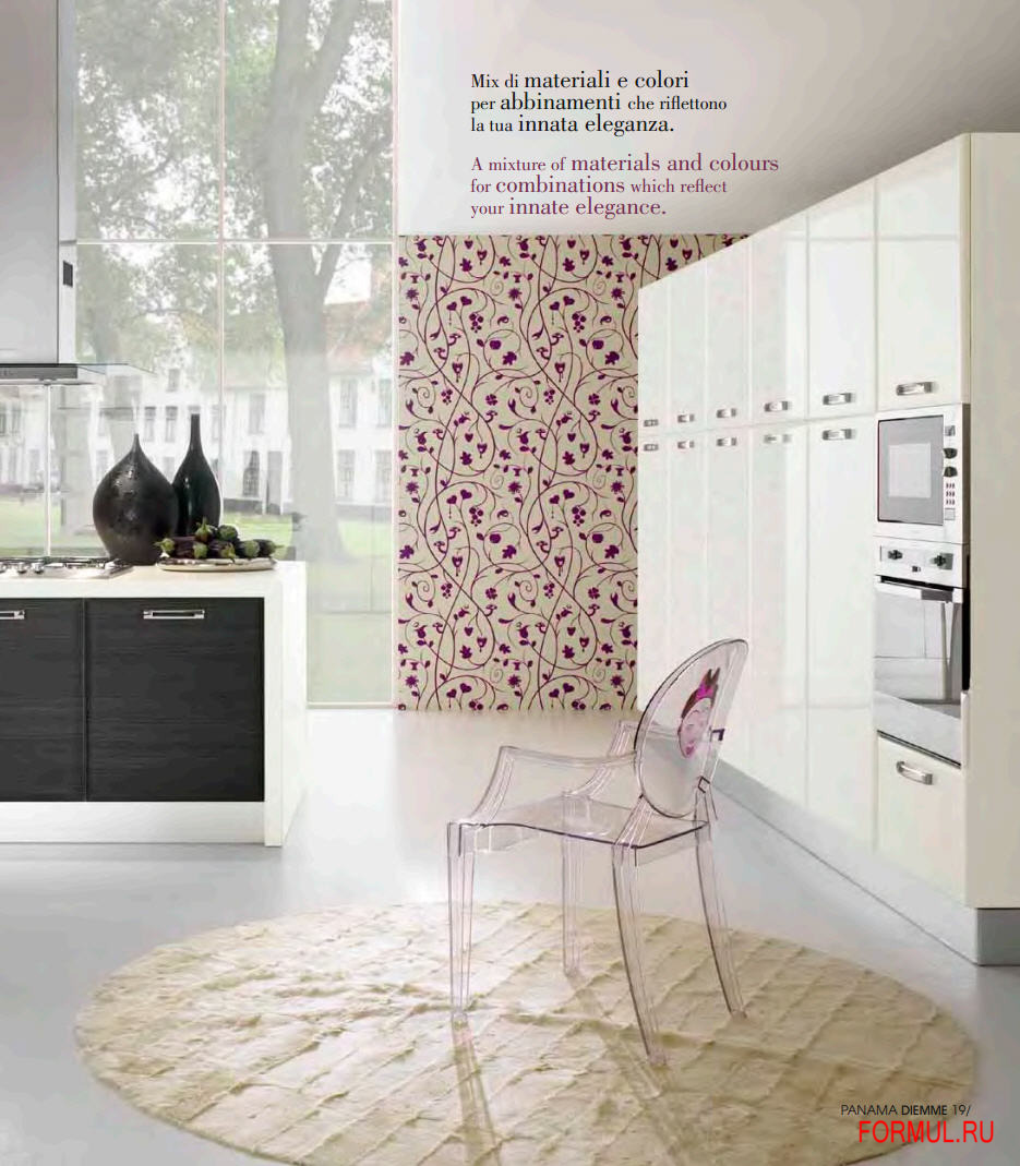 DIEMME является молодой динамичной и гибкой компанией, которой за многие годы деятельности удалось занять лидирующие позиции на рынке кухонной мебели . Акцентируя внимание на эволюции в отрасли, технологической модернизации и непрерывного общения с клиентами, DIEMME смогла создать и предложить продукцию с уровнем дизайна который в состоянии с успехом конкурировать на внутреннем рынке в Европе и во многих странах по всему миру на протяжении более 40 лет. Выбор материалов основывается на богатым лесами из районов с обязательным условием восстановления зеленых насаждений. Таким образом сохраняется баланс природы Сложную технологию постоянно развивают узкоспециализированные профессионалы, делая упор на выигрышной комбинации мудрости и опыта человека.