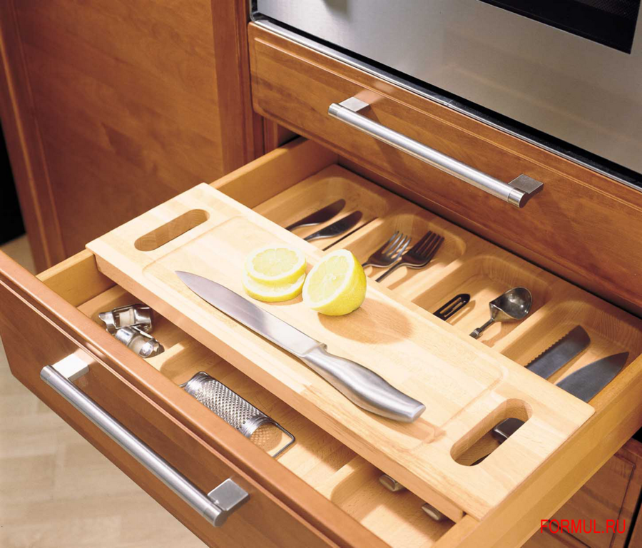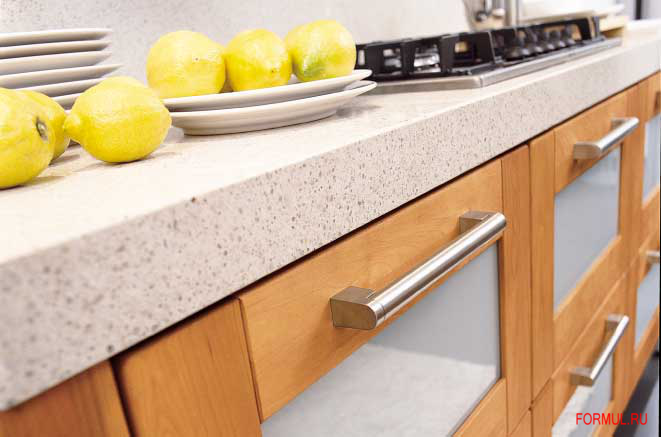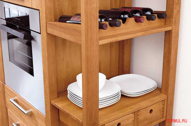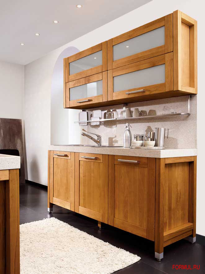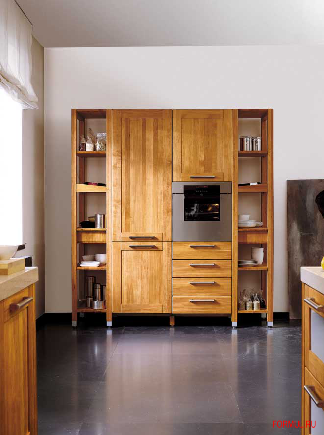 Кухня Axis выполнена из древесины вишни покрытой темным лаком.
