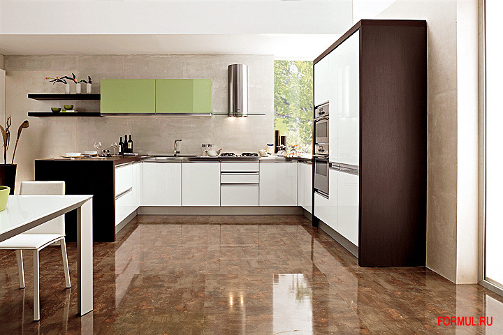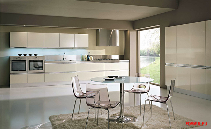 Styling является богатой и свежей кухней благодаря полированным алюминевым ручкам, горизонтально установленным на край двери. Двери могут быть в матовой или глянцевой отделке в широкой цветовой гамме. Стеклянные двери и выдвижные ящики с алюминевыми полированными рамами.