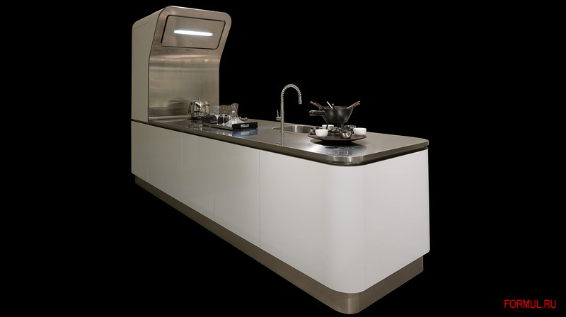 В данной модели использованы высокоэффективные технологические материалы, подлежащие переработке. Также здесь есть некоторые функциональные особенности, такие как дверь, которая ускользает внутрь шкафа. Кроме того, в кухню Liquida Flipper встроены холодильник и вытяжка.
