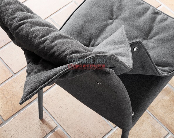 Стул из стали полностью покрытый тканью . Спинка и сидение с мягкой подушкой .