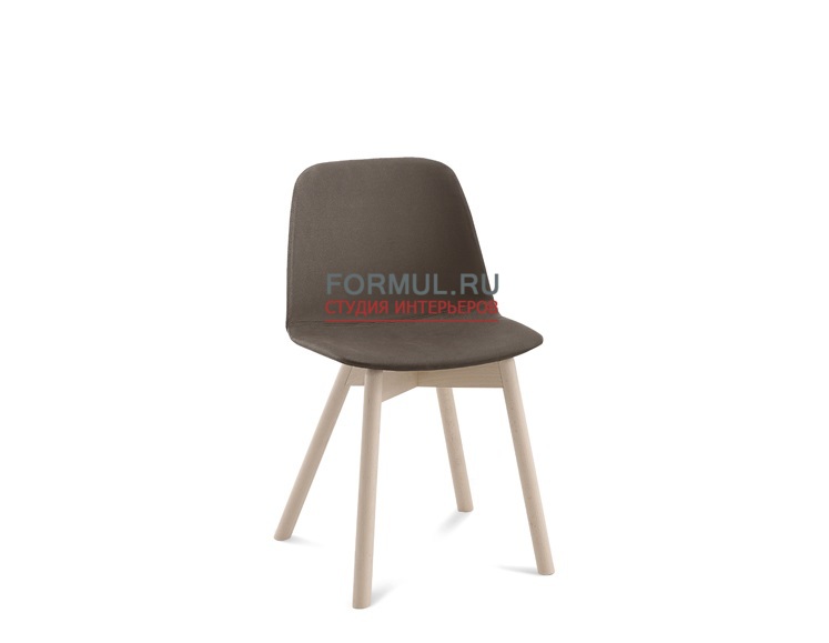 Стул с деревянными ножками , спинка и сидение из пластика или ткани.