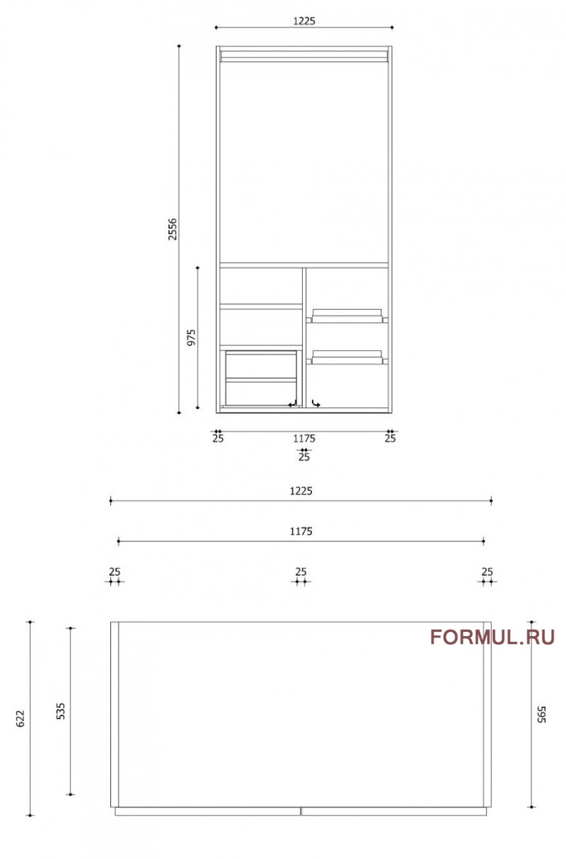 Компоновка внутреннего наполнения представлена на схеме — она поможет представить, как удобно Вы сможете организовать хранение.