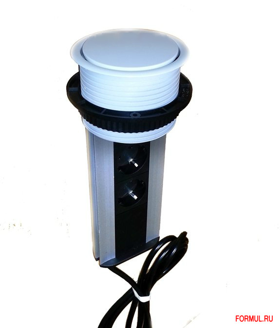 Выдвижная розетка Evoline Port Standart 931.03.724 с крышкой из пластика (3 розетки), длина 2,5 м, цвет белый. Встраиваемую розетку можно установить не только на кухне, но и в кабинете, в офисе, на рабочем столе школьника или студента. Встраиваемая выдвижная розетка оснащена кабелем 2,5 метра с заземлением. Розетку можно установить в верхние шкафы (при установке на кухне) с максимальной толщиной 50 мм. При установке самостоятельно без помощи специалистов Вам необходимо будет фрезой сделать монтажное отверстие диаметром 102 мм, глубина сверления должна быть до 45 мм. Для того чтобы воспользоваться встроенной выдвижной розеткой необходимо нажать на углубление на крышке и потянуть ее, тем самым Вы вытянете розетку, подключить вилку оборудования которое Вы собираетесь использовать и задвинуть розетку обратно в столешницу. Между крышкой и панелью остается пространство для свободного прохода кабеля.