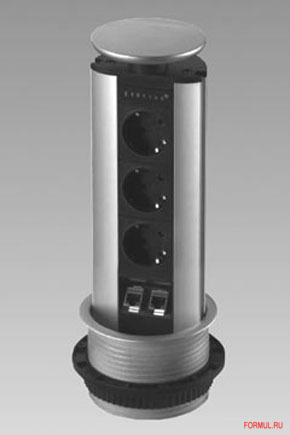 Универсальная встраиваемая выдвижная розетка Evoline Port 931.00.318. Оснащена 3 электрическими розетками и 2-мя разъемами RJ45 для подключения компьютера и телефона. Без подсветки. Встраиваемую розетку можно установить не только на кухне, можно в кабинете, в офисе или переговорной или на рабочем столе школьника или студента. Встраиваемая выдвижная розетка Evoline оснащена 3-х метровым кабелем с заземлением. Кабель со штепсельной вилкой. Крышка Evoline Port 931.00.318 выполнена из пластика окрашенного в серебристый цвет, корпус из пластика с покрытием в тон.