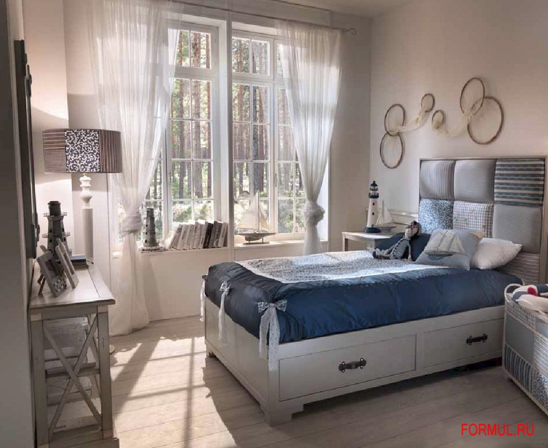 Кровать без изножья с выдвижными ящиками выполнена в классическом кантри.