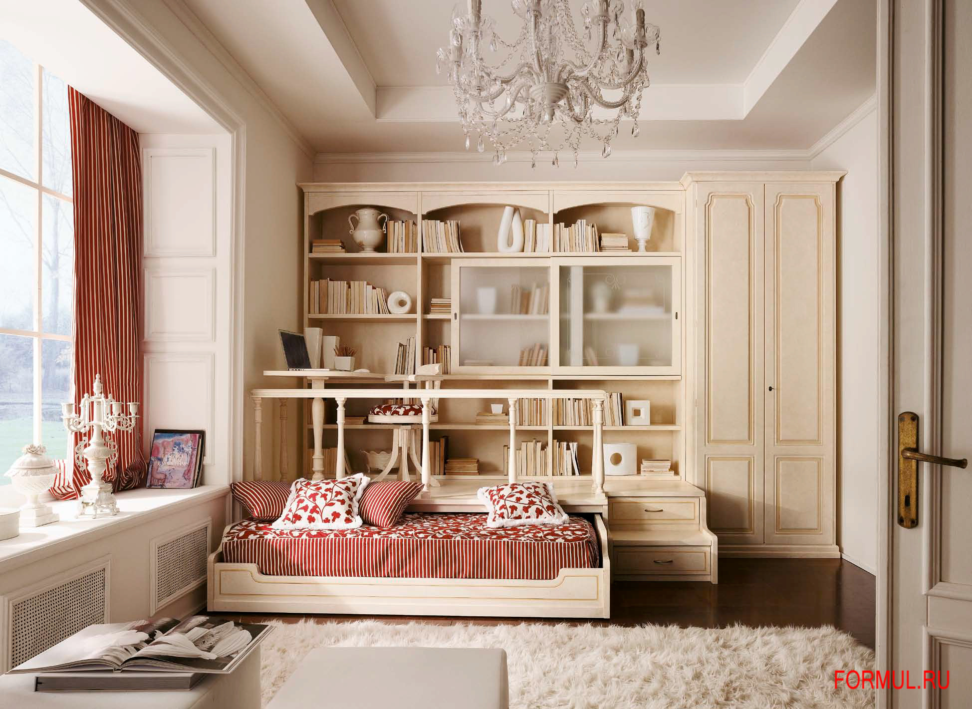 Одно лишь движение, и спальня становится просторнее. Кровать может быть выполнена также в “убирающемся” варианте, в котором съемные матрас и сетка расположены в удобном ящике, находящемся под антресолью.