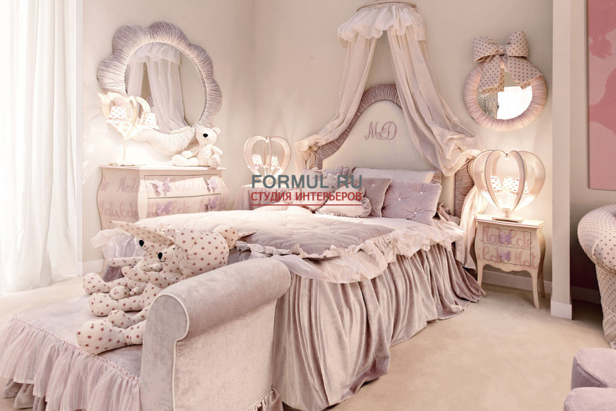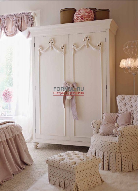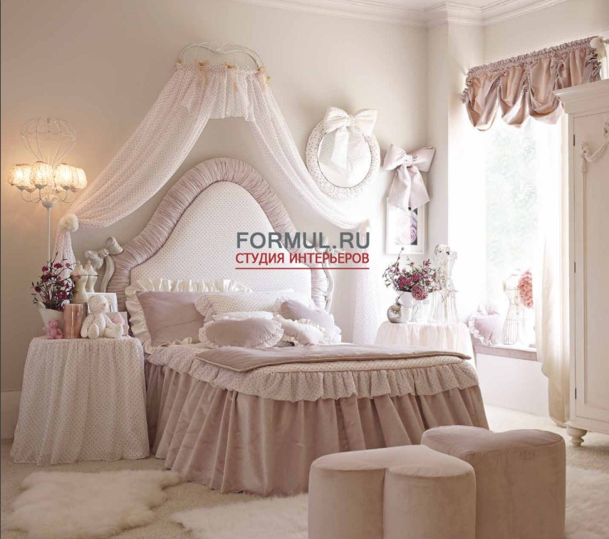 Подарите сказку! Элитная детская мебель от Dolfi создаст романтическую атмосферу, оградит от стрессов современной стремительной жизни. Полностью готовая обстановка для детской спальни. Спальня включает в себя: кровать Eveline, стол4081, шкаф 3080, зеркало 4010, пуф 7204, лампа 2030.
