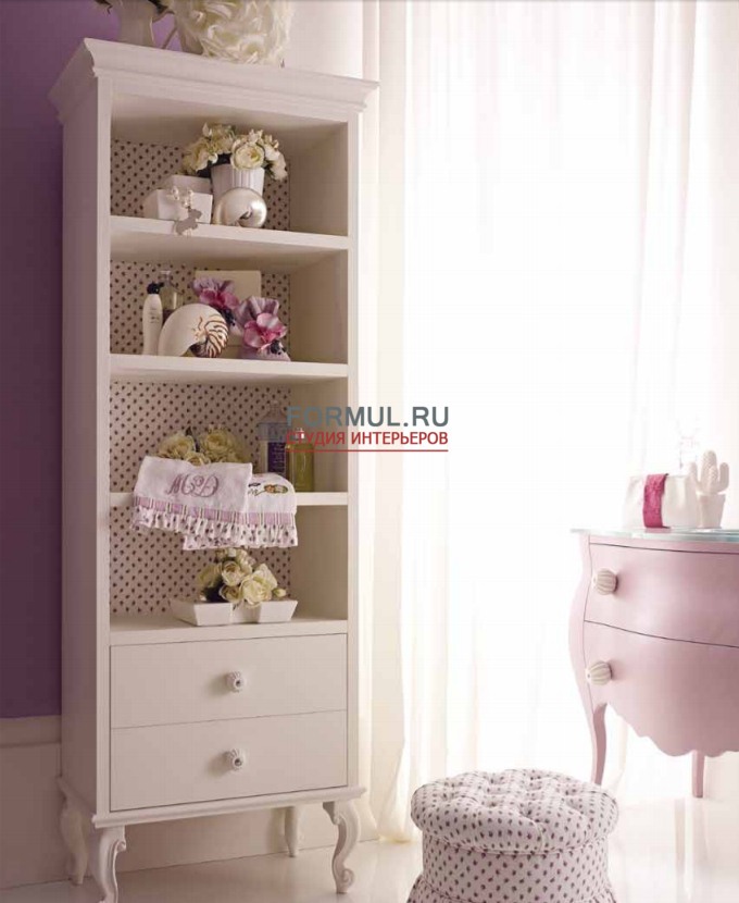 Детская Tiffany, выполненная в нежных розовых тонах, укомплектованная тщательно подобранными модулями, станет любимым местом отдыха и игр Вашей любимицы. Спальня включает в себя: кровать Tiffany, комод 0530/PS05, прикроватная тумба 0531/PS06, шкаф 1090, зеркало 4025, полка 1073/PS06, лампа 2028.