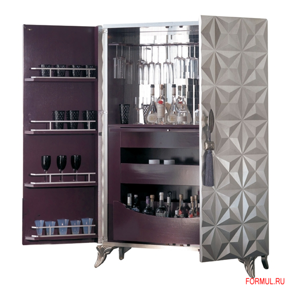 Бар с отсеками для хранения бутылок, стаканов и бокалов. В верхней части задней панели установлено зеркало. Снаружи модель отделана лаком / золотой, серебряной или медной фольгой; внутри — в баклажановый цвет. Дверцы и боковины напоминают грани алмаза. В коллекцию также входят шкаф под ПК, ТВ и платяной шкаф схожего дизайна.