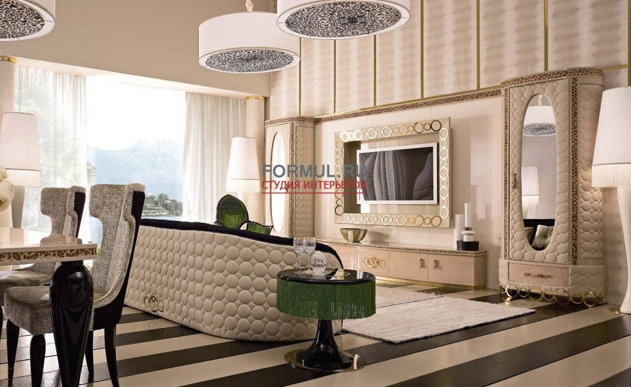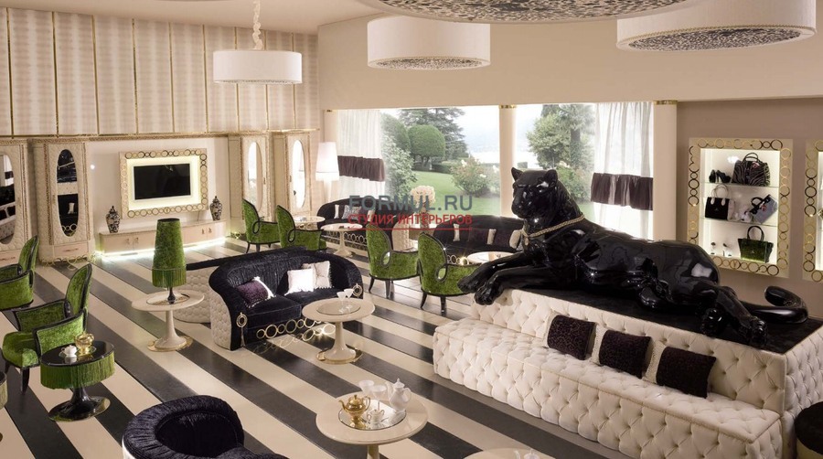 Душа царства Jaguar AltaModa. Он разрывает пространство через вспышки золотого света и пятен ярких цветов. Каждый элемент превращается в золото, цвет необходимо создавать в сочетании с черным, это приводит к атмосфере с четкой международной привлекательностью. Jaguar - это поиск максимума деталей, для творческих жилых помещений высокого стилистического содержания.