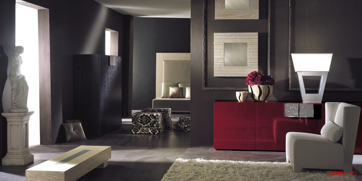 Комод, каркас и дверцы которого выполнены из древесноволокнистая плита средней плотности, МДФ, тополь.Блестящий лаковая поверхность.Стальные ручки украшены оригинальными кристаллами Сваровски.Высококачкственная фурнитура.Боковые ящики открываются щелчком. Отделка: Красный блестящий Код FL/13