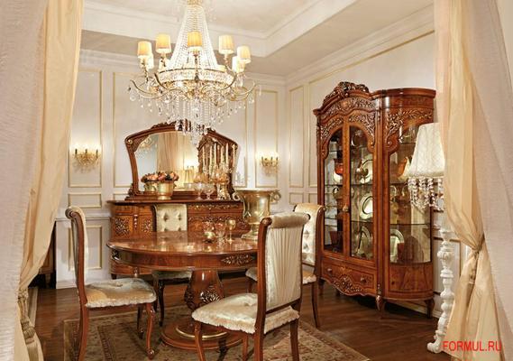 Обладающая идеальной красотой элитная итальянская гостиная Reggenza была произведена на итальянской фабрике Barnini Oseo. При изготовлении выдающегося гарнитура были использованы отборные древесные породы, идеально подобранный шпон (для инкрустации), дорогая фурнитура и лучшее обивочное полотно. Элитная гостиная из Италии Reggenza сделана в классическом стиле, обладает присущей данному стилю гордостью и роскошным видом, чему обязана изящной инкрустации маркетри наносящей на комод из Италии и итальянскую витрину орнаментальные штрихи, свидетельствующие о назначении гарнитура и его ценности. Даже итальянское зеркало обрамлено не просто в деревянную раму, а покрытую позолотой, резную с широким тесненным профилем. Предоставив достаточное количество композиций гостиной, итальянская мебельная фабрика Barnini Oseo сделала гарнитур доступней и комфортней. Вы подбираете себе именно те габариты и именно тех изделий, которые нужны только вам. Каждый предмет, входящий в коллекцию Reggenza совместим с другим. Элитная итальянская гостиная Reggenza украшена позолоченным декором, вкрапления позолоченных элементов в углы предметов интерьера невероятно сочетаются с нарочито подстареной структурой дерева и изысканной орнаментальной инкрустацией, благодаря чему элитная гостиная из Италии Reggenza приобретает богатейший вид и несет в себе атмосферу достатка.