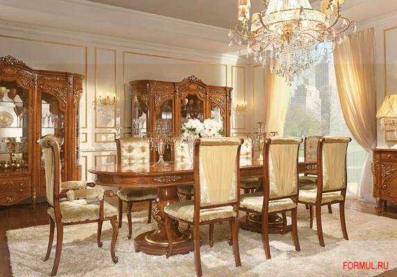 Обладающая идеальной красотой элитная итальянская гостиная Reggenza была произведена на итальянской фабрике Barnini Oseo. При изготовлении выдающегося гарнитура были использованы отборные древесные породы, идеально подобранный шпон (для инкрустации), дорогая фурнитура и лучшее обивочное полотно. Элитная гостиная из Италии Reggenza сделана в классическом стиле, обладает присущей данному стилю гордостью и роскошным видом, чему обязана изящной инкрустации маркетри наносящей на комод из Италии и итальянскую витрину орнаментальные штрихи, свидетельствующие о назначении гарнитура и его ценности. Даже итальянское зеркало обрамлено не просто в деревянную раму, а покрытую позолотой, резную с широким тесненным профилем. Предоставив достаточное количество композиций гостиной, итальянская мебельная фабрика Barnini Oseo сделала гарнитур доступней и комфортней. Вы подбираете себе именно те габариты и именно тех изделий, которые нужны только вам. Каждый предмет, входящий в коллекцию Reggenza совместим с другим. Элитная итальянская гостиная Reggenza украшена позолоченным декором, вкрапления позолоченных элементов в углы предметов интерьера невероятно сочетаются с нарочито подстареной структурой дерева и изысканной орнаментальной инкрустацией, благодаря чему элитная гостиная из Италии Reggenza приобретает богатейший вид и несет в себе атмосферу достатка.