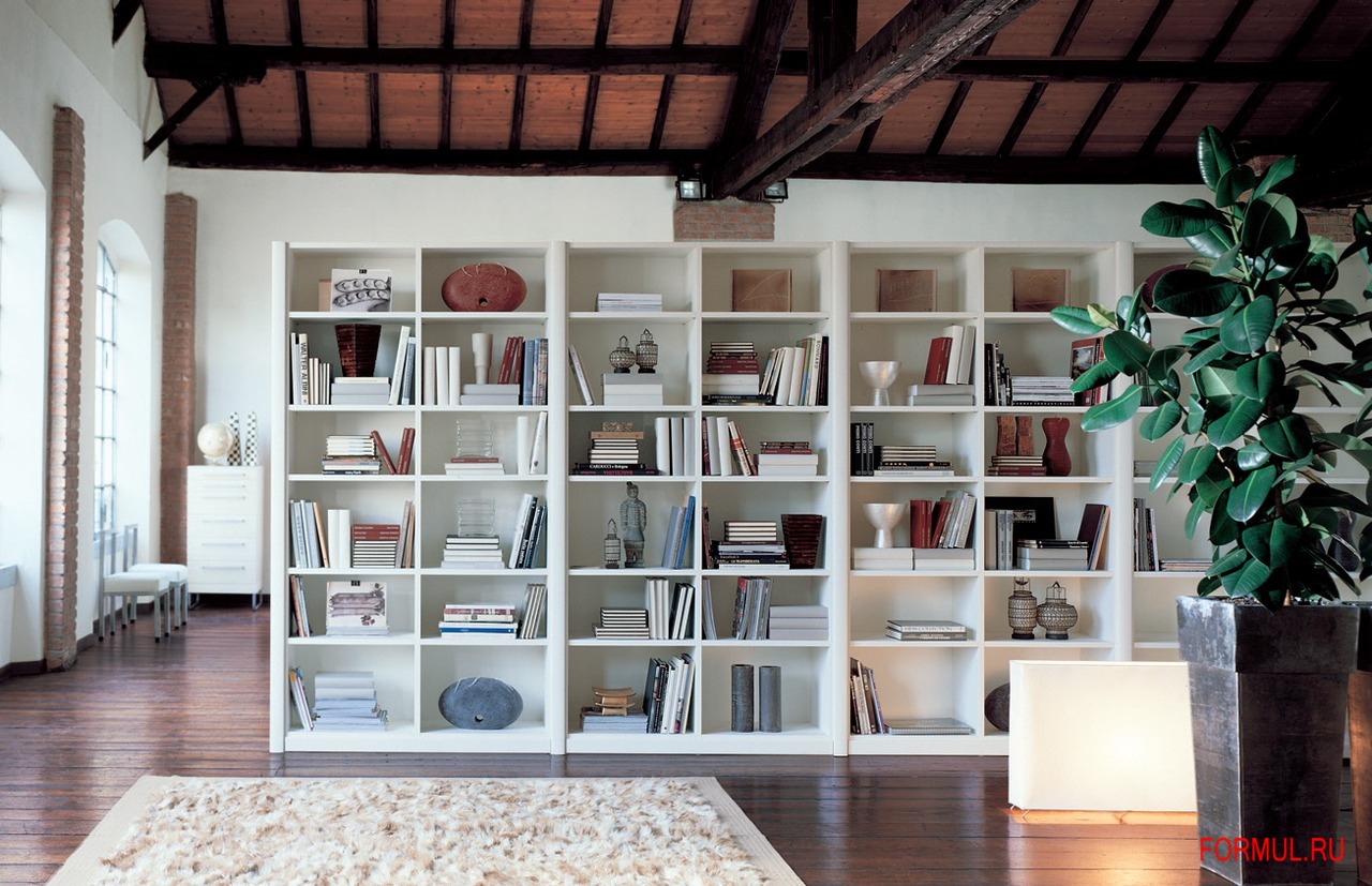 Этот книжный шкаф - вечная классика, в чрезвычайно изящной в белой отделке.