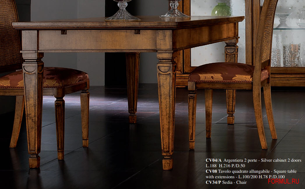 Итальянская Гостиная CV04/A витрина, CV04 стол, CV34/P стул фабрики Cantiero выполненная в классическом стиле, относится к экономичному ценовому уровню заказной программы, сроки поставки мебели для гостиной CV04/A витрина, CV04 стол, CV34/P стул от 30 до 90 дней, подробнее о сроках поставки гостиной из Италии вы можете узнать позвонив по телефонам: (495)181-55-81