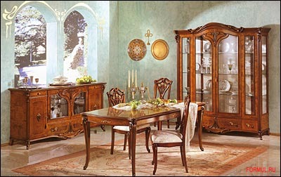 размеры – витрина: L.184 Н.218 Р.57, комод L.200 Н.103 Р.56, стол: L.200 Н.77 Р.100;