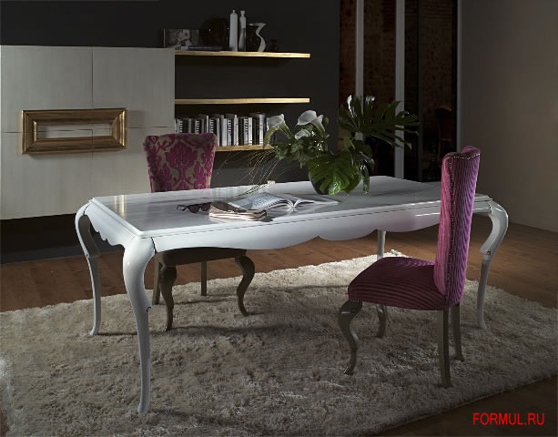 Комплект состоящий из стола и стульев, прекрасно впишется в интерьер столовой или гостиной. Цветовая гамма и отделка стола Art. M950- белый глянцевый, стула Art. V900- vecchio biscotto.
