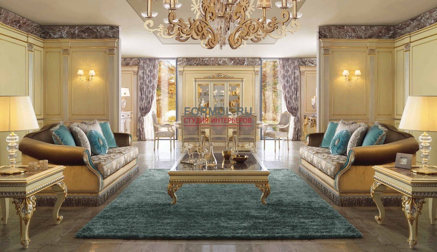 Гостинная в стиле классика, которые привлекают внимание богемной красотой вневременной классики. Авторский дизайн, выполненный через призму исторических эпох, красота фигурных форм, восхитительных отделочных материалов, а также безукоризненное ручное мастерство – все это заметно подчеркивает красоту облика гарнитура. Здесь представлены обеденные столы прямоугольных и круглых форм, оснащенные раздвижной системой, на фигурных резных ножках, удобные стулья и полукресла с изогнутыми спинками.