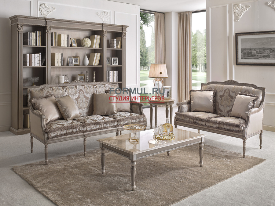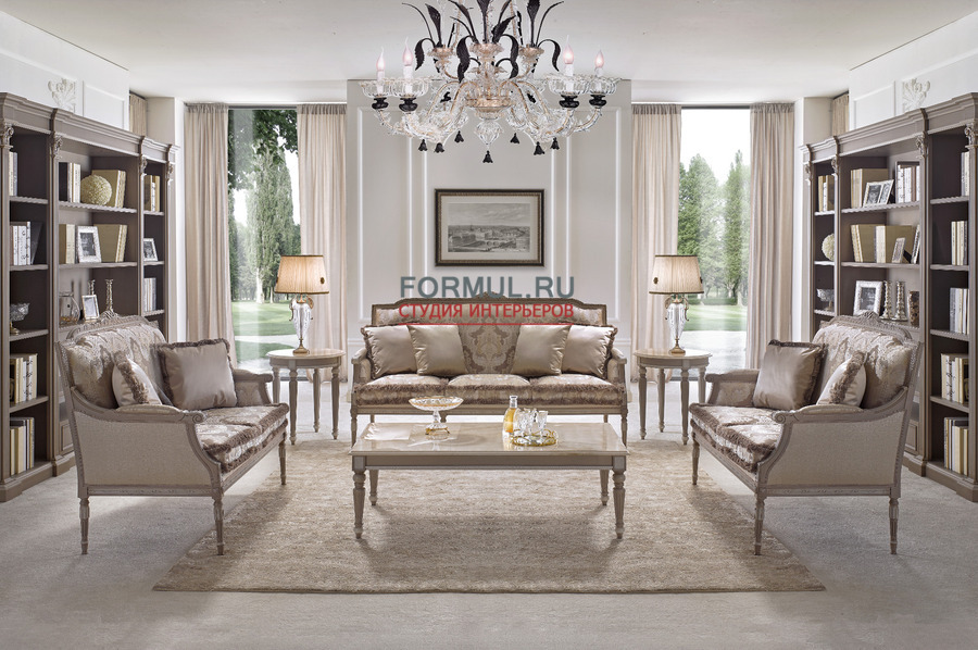 Гостинная в стиле классика, которые привлекают внимание богемной красотой вневременной классики. Авторский дизайн, выполненный через призму исторических эпох, красота фигурных форм, восхитительных отделочных материалов, а также безукоризненное ручное мастерство – все это заметно подчеркивает красоту облика гарнитура. Здесь представлены обеденные столы прямоугольных и круглых форм, оснащенные раздвижной системой, на фигурных резных ножках, удобные стулья и полукресла с изогнутыми спинками.