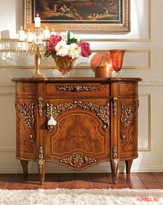 Обладающая идеальной красотой элитная итальянская гостиная Reggenza была произведена на итальянской фабрике Barnini Oseo. При изготовлении выдающегося гарнитура были использованы отборные древесные породы, идеально подобранный шпон (для инкрустации), дорогая фурнитура и лучшее обивочное полотно. Элитная гостиная из Италии Reggenza сделана в классическом стиле, обладает присущей данному стилю гордостью и роскошным видом, чему обязана изящной инкрустации маркетри наносящей на комод из Италии и итальянскую витрину орнаментальные штрихи, свидетельствующие о назначении гарнитура и его ценности. Даже итальянское зеркало обрамлено не просто в деревянную раму, а покрытую позолотой, резную с широким тесненным профилем. Предоставив достаточное количество композиций гостиной, итальянская мебельная фабрика Barnini Oseo сделала гарнитур доступней и комфортней. Вы подбираете себе именно те габариты и именно тех изделий, которые нужны только вам. Каждый предмет, входящий в коллекцию Reggenza совместим с другим. Элитная итальянская гостиная Reggenza украшена позолоченным декором, вкрапления позолоченных элементов в углы предметов интерьера невероятно сочетаются с нарочито подстареной структурой дерева и изысканной орнаментальной инкрустацией, благодаря чему элитная гостиная из Италии Reggenza приобретает богатейший вид и несет в себе атмосферу достатка.