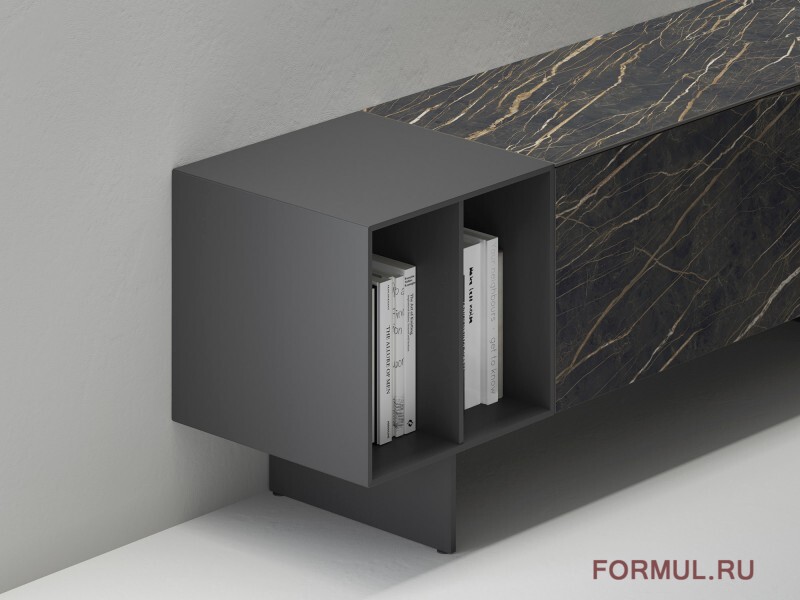 Madia con piede 180 от Caccaro — это изысканное сочетание функциональности и современного дизайна, воплощённое в элегантной форме. Как изящный мост через венецианский канал, его подвесная конструкция будто парит над полом, наполняя пространство итальянской лёгкостью. Дизайнер Моника Граффео создала не просто комод, а мебельный хамелеон — благодаря отделке Kera Nero Marquinia, он переливается глубокими оттенками, словно полированный чёрный мрамор в палаццо эпохи Возрождения.