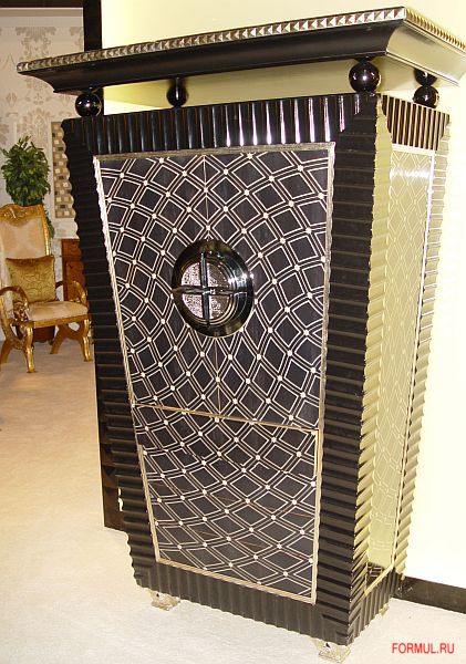 Двухдверный комод с 4-мя ящиками, причудливой формы с искаженным ритмом орнамента – эта модель похожа на отражение в кривом зеркале.