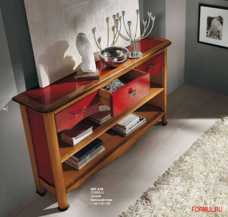 Итальянская Консоль ART. A18 фабрики CP mobili выполненная в классическом стиле, относится к экономичному ценовому уровню заказной программы, сроки поставки мебели для гостиной ART. A18 от 30 до 90 дней, подробнее о сроках поставки консоли из Италии вы можете узнать позвонив по телефонам: (495)181-55-81