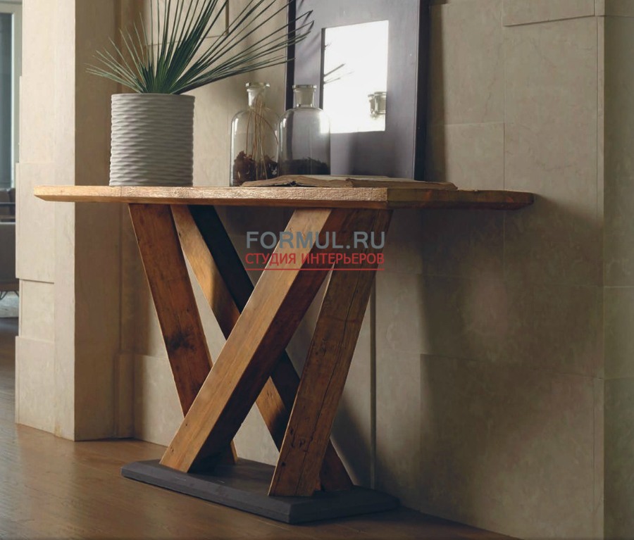 Консоль выполнена из состаренного дерева, основание черного цвета.