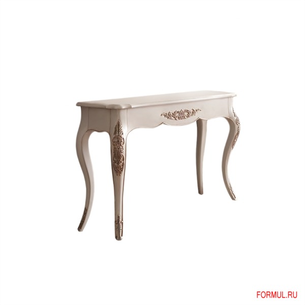 Отдельностоящая консоль на высоких изогнутых ножках. Выполнена из массива натуральной древесины. На выбор доступны различные варианты отделки по каталогу фабрики. Классический дизайн подчеркивает резьба ручной работы.