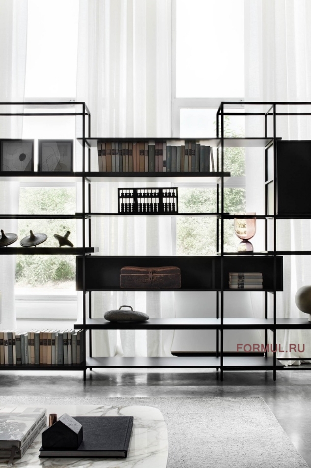 Стеллаж Plain от итальянской фабрики Lema Mobili — это воплощение современного дизайна, где архитектурная строгость встречается с художественной свободой. Разработанный Франческо Рота, этот модульный книжный шкаф с металлическим каркасом переосмысливает традиционные представления о хранении, превращая обычную мебель в миниатюрное произведение архитектурного искусства. Его конструкция из лакированного металла с квадратным сечением создает ощущение легкости и воздушности, в то время как полки, расположенные в кажущемся случайном порядке, образуют динамичные композиции для книг и декоративных предметов .