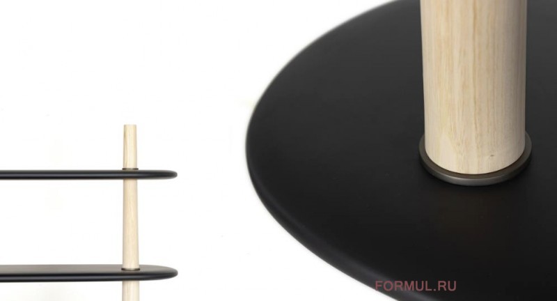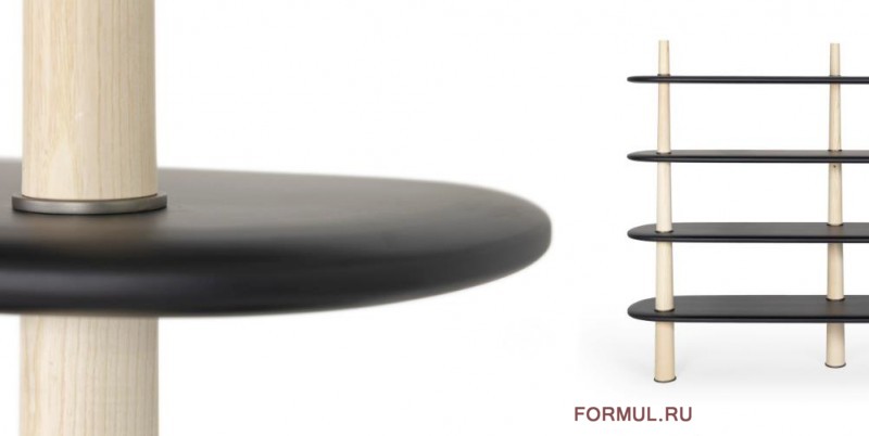 Столбы из массива ясеня. Фигурные полки из МДФ. Детали из окрашенного металла.