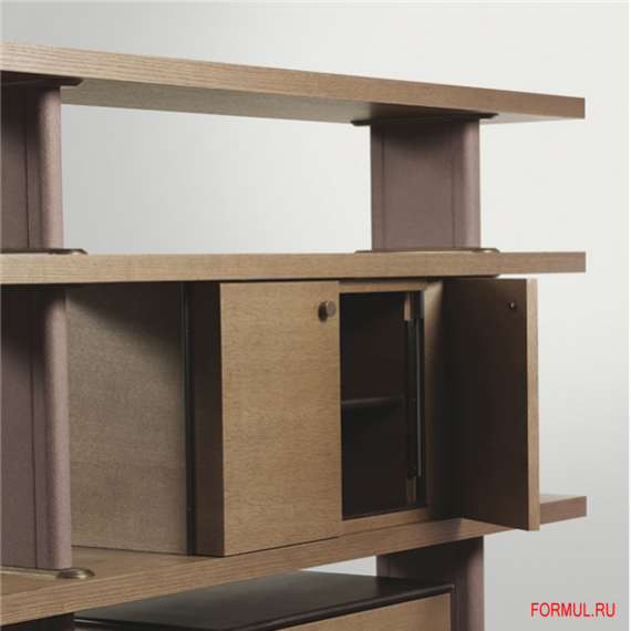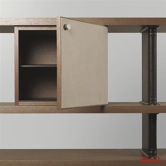 К стеллажу "Peggy" хорошо подходят шкафы с 1 створкой или с 2 створками, комод с 2 выдвижными ящиками, полностью обитый кожей опорный комод, застеклённый шкаф с основанием из сукна или кожи.