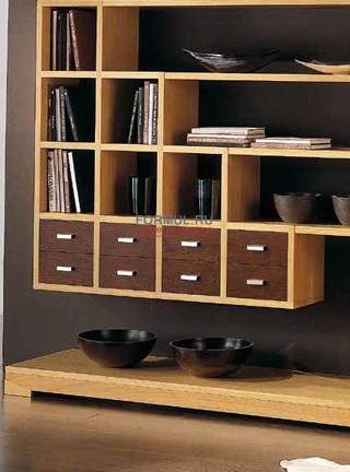 Модульная стенка. Композиция состоит из базы, полок и навесных шкафчиков в красивой геометричной форме, где вы сможете удобно расположить и книги и предметы декора. Структура - дуб.