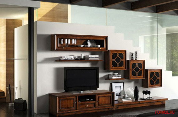 Стенка коллекции "Essenzia". 4 навесные полки, тумба под телевизор. Материал: дерево.