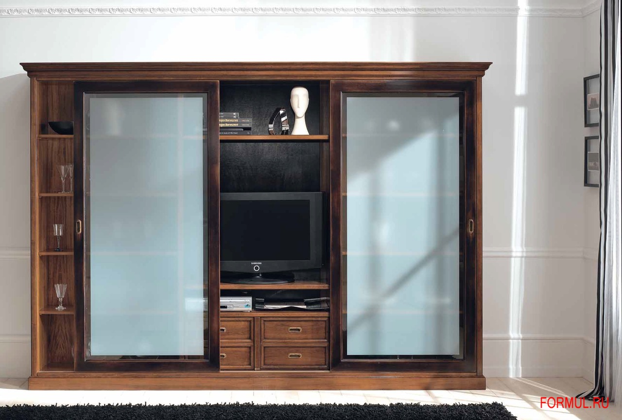 Композиция из натурального дерева. Тумба для Тв, большое количество полок и ящиков, дверцы купе.