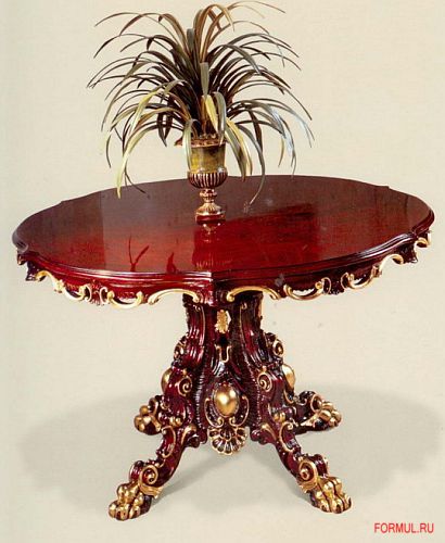 Игра красноватых оттенков благородной древесины и золоченных элементов, легкий цветочный орнамент, венчающий столешницу – из всего этого складывается образ вещи незаурядной и штучной.