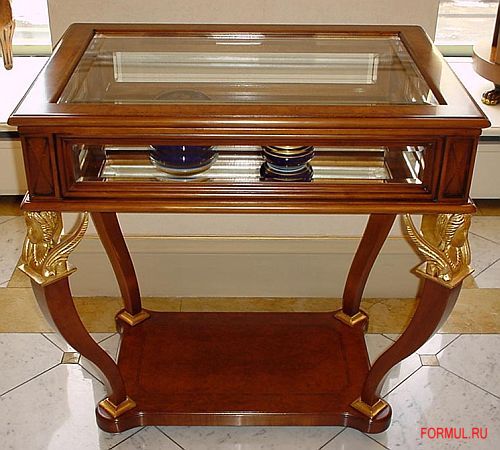 Прямоугольный стеклянный столик. Сфинс с позолочением..