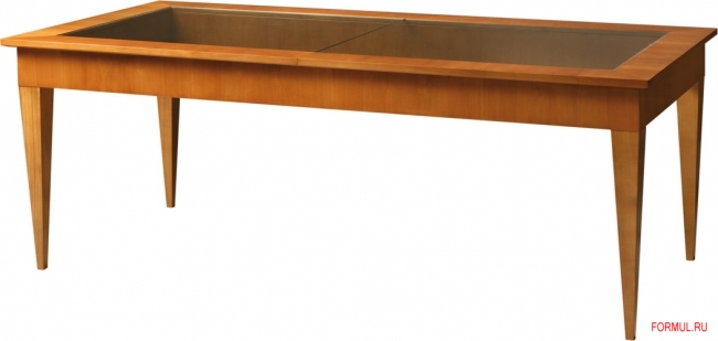 Топ выполнен из толстого стекла, вставленного в деревянное обрамление.