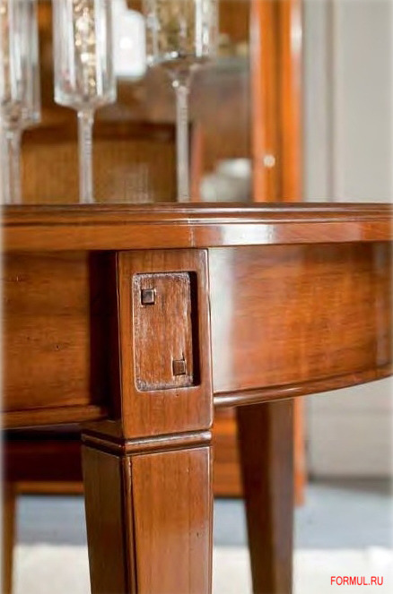 Обеденный стол-трансформер: длину столешницы можно увеличить за счет двух вкладок-расширений (каждая по 43 см) – модель в классическом стиле. Выполнен из древесины вишни с инкрустацией.
