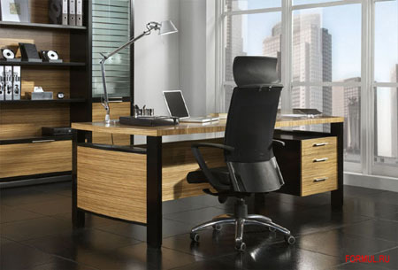 Современный письменный стол, столешница из шпонированной листели Zebrano и массив, имеет 3 кассетницы.