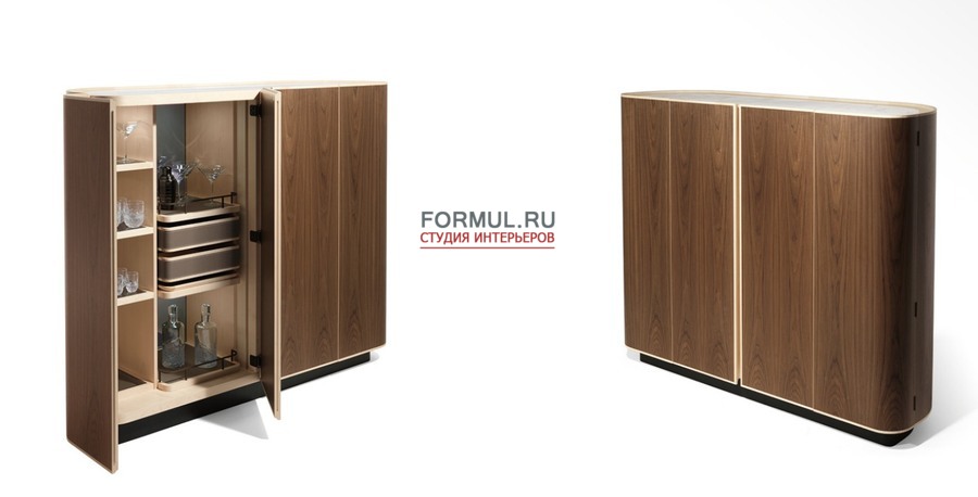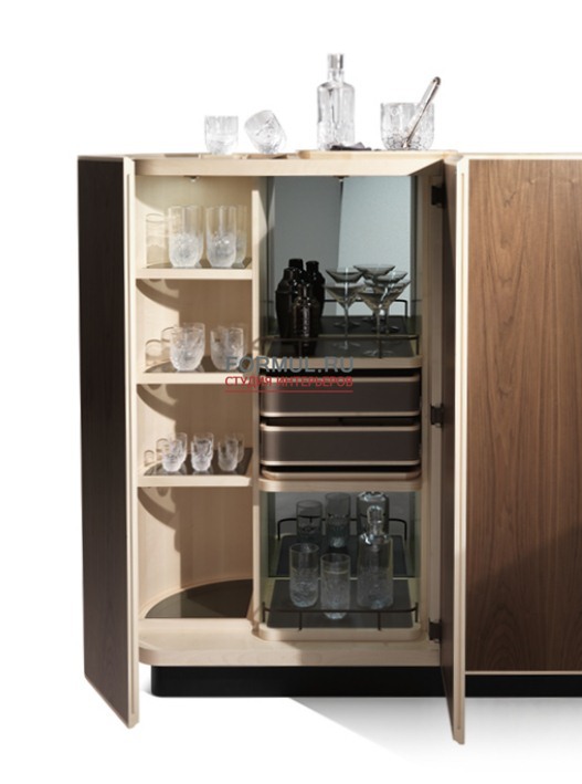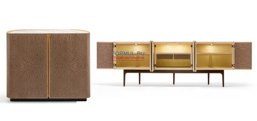 Серия шкафов, доступных в двух вариантах высоты: 95 и 136 см. Рама из тополя фанеры наружняя отделка в твердого клена (fin.28). Внешняя часть доступен в Мадрона капа или орехового дерева Каналетто