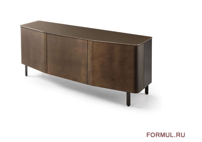 Шкаф с лакированной деревянной структурой «Lava Grey», дверцы из гнутого сверхлегкого стекла толщиной 6 мм, обработанного кислотой, с обратной стороны покрытого лаком со специальной отделкой, текстурированный эффект. Верх из сверхлегкого стекла толщиной 10 мм, покрытого лаком с обратной стороны.
