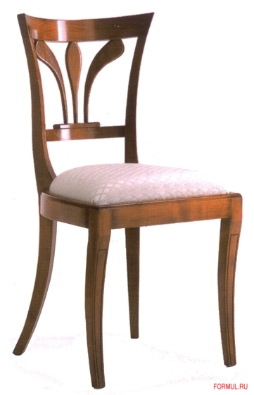 Стул в классическом стиле. Выполнен на каркасе из древесины. Обивка сиденья – текстиль из ассортимента компании. Отделка поверхностей – лак, пчелиный воск.