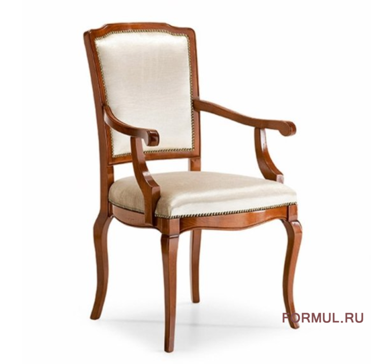 Стул в классическом стиле на резных ножках, выполненных из массива дерева в отделке лаком. Обивка из коллекции компании.