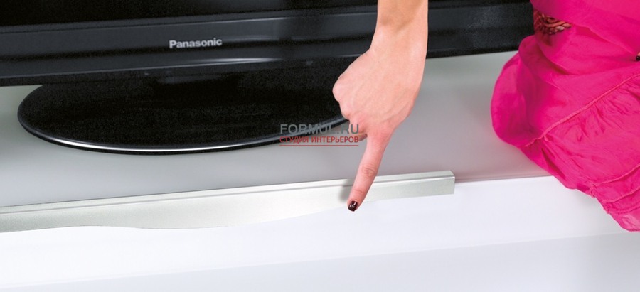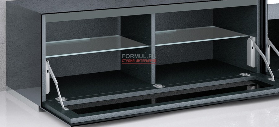 Тумба под тв, имеет скрытые поворотные колеса. Распашные дверцы снабжены стопорным механизмом. Ручка и основа из нержавеющей стали имееют поверхность против отпечатков пальцев.